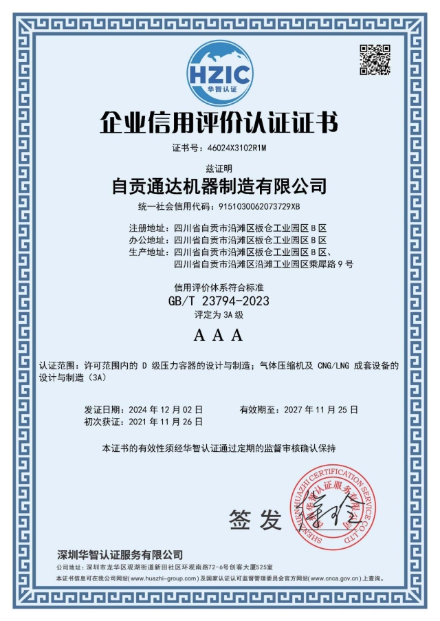 企业信用评价认证证书
