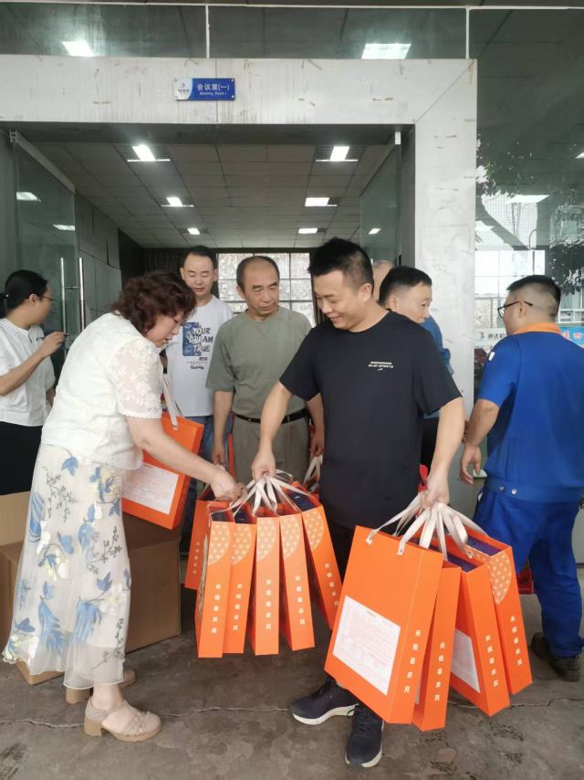 福利发放现场气氛温馨而热烈,各车间、部门的代表们积极参与搬运与分发,工作人员耐心细致地核对信息,确保将这份承载着心意与祝福的礼物,准确无误地递到每一位通达人手中。