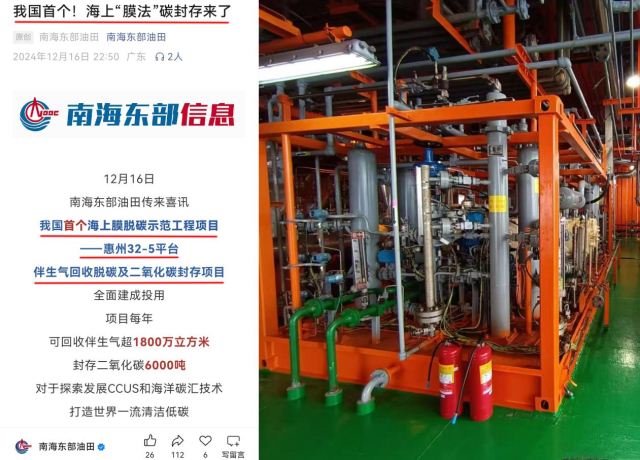 2024年10月,投产的惠州作业区HZ32-5平台MW-12.6/2-63.5型伴生气压缩机,主要平台的井口伴生气进行增压、分离回收,干燥的6.3MPa的伴生气给下游的膜脱碳设备和CO2压缩机供气。