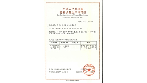 中华人民共和国特种设备生产许可证(压力容器制造)