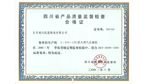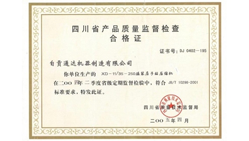 四川省产品质量监督检查合格证