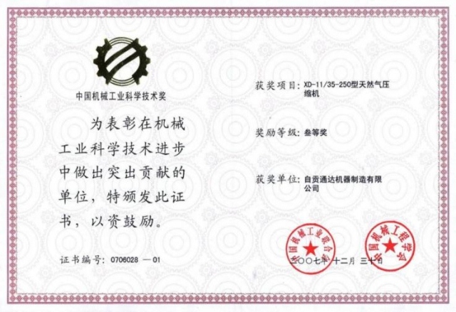 国家火炬计划重点项目证书(大排量高性能CNG压缩机)